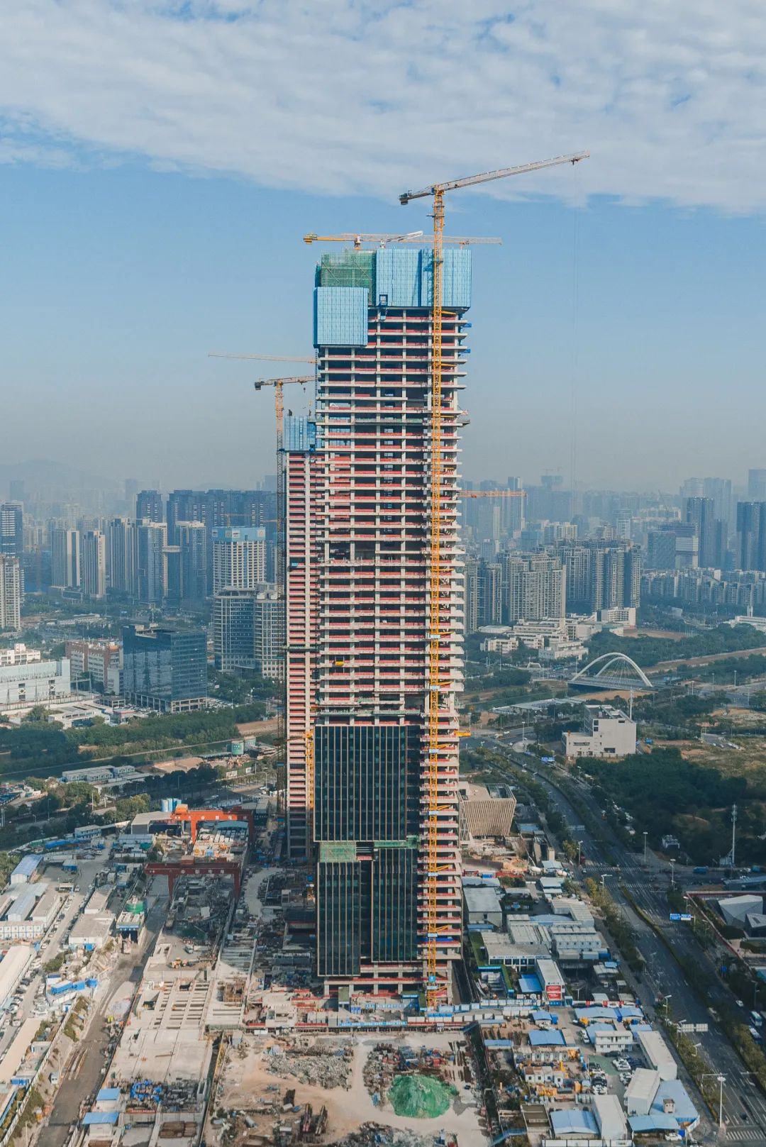 該項目位于南山區(qū)深圳灣超級總部基地,占地面積為3.6萬平方米,將建設成集辦公、商業(yè)、酒店、文化、交通于一體的超高層雙塔地標TOD綜合體。項目采用裝配式鋼結(jié)構(gòu)技術(shù)快速建造,綜合應用多項智能建造創(chuàng)新技術(shù)。如基于BIM-nD理念的數(shù)字化管理平臺,實現(xiàn)建造過程關(guān)鍵數(shù)據(jù)實時映射和追溯;超高層智能頂升平臺,集成多款智能機器人和裝備,形成流水線式高效建造模式;實行數(shù)字化交付,為今后智慧運維管理平臺建立“數(shù)據(jù)底座”。