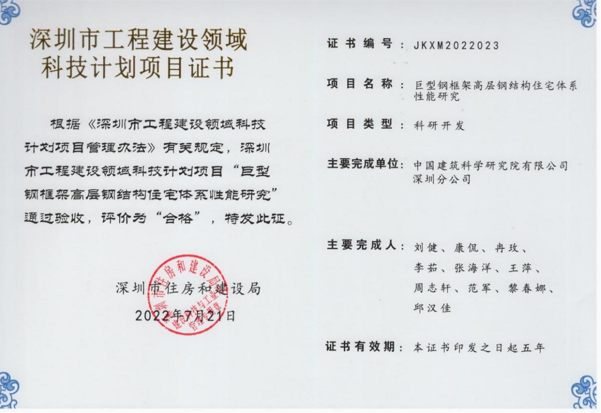 該項目是深圳市工程建設領(lǐng)域科技計劃項目,巨型鋼框架高層鋼結(jié)構(gòu)住宅結(jié)構(gòu)體系,是根據(jù)已有的巨型鋼框架結(jié)構(gòu)體系的特點和多層裝配式住宅的成熟經(jīng)驗,將巨型鋼框架作為主結(jié)構(gòu)、主框架間的多層結(jié)構(gòu)作為次結(jié)構(gòu),將二者有機結(jié)合,從而形成的一種新型高層鋼結(jié)構(gòu)住宅結(jié)構(gòu)體系。