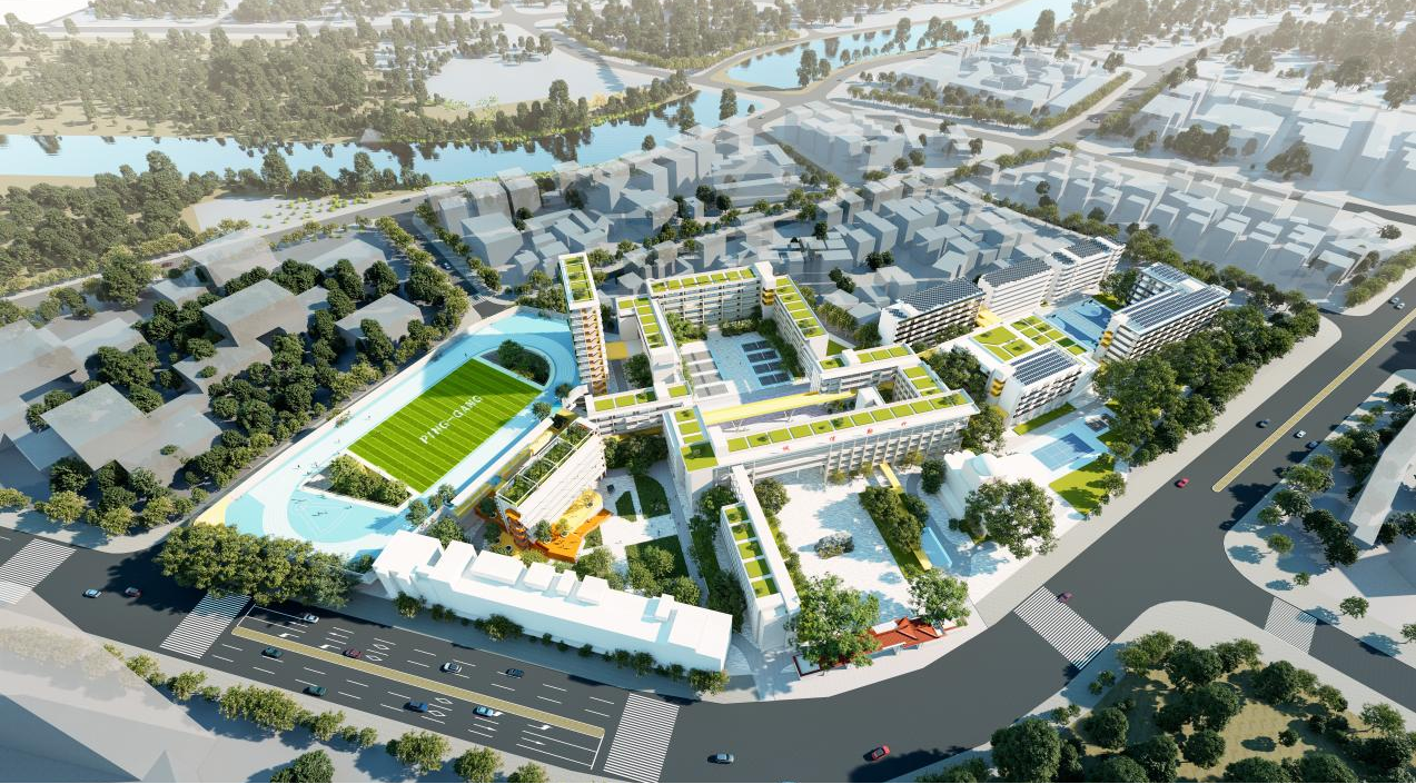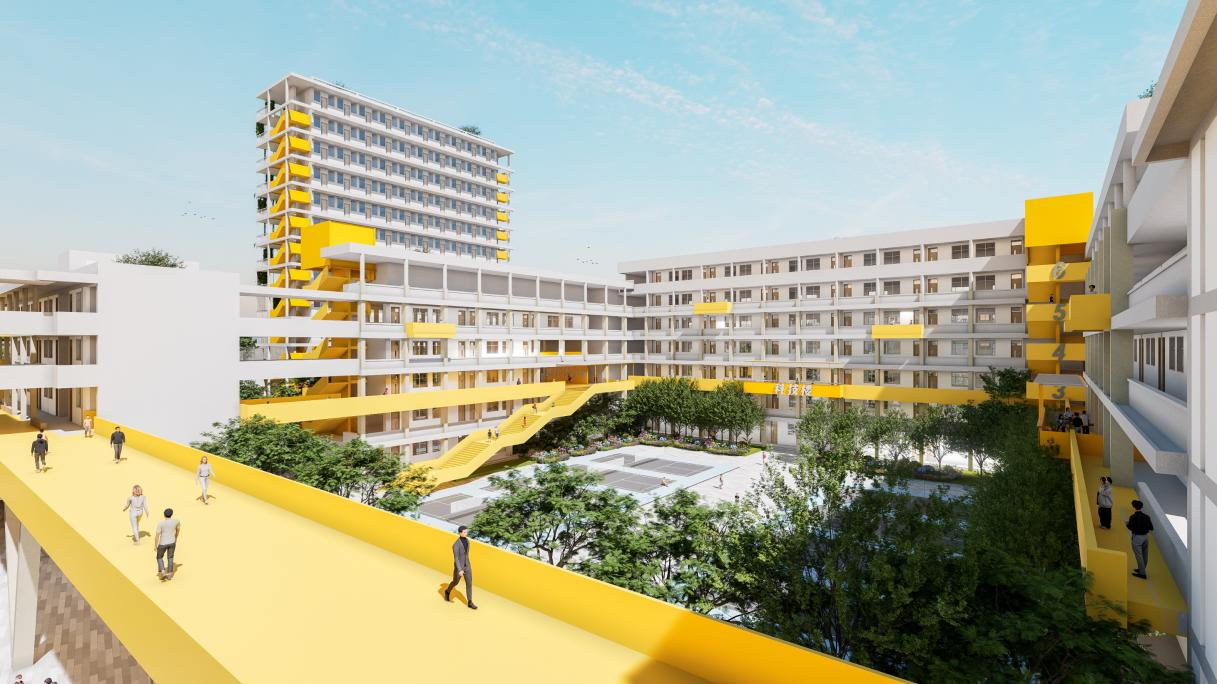 因地處龍崗區(qū)“客韻新城”,毗鄰龍崗河、龍園公園和鶴湖新居客家民俗博物館,周邊交通發(fā)達(dá),生活便利,人口聚集,校園內(nèi)綠樹成蔭、設(shè)施齊全,擁有良好的打造“綠色校園”“文化校園”的基礎(chǔ)。項(xiàng)目組立足校園現(xiàn)狀,通過安全評(píng)估、院落織補(bǔ)、空間滲透、連橋搭建等設(shè)計(jì)手法打造多元一體化校園,建成后將為龍崗區(qū)師生提供一個(gè)安全高效、活力創(chuàng)新的高品質(zhì)學(xué)校。