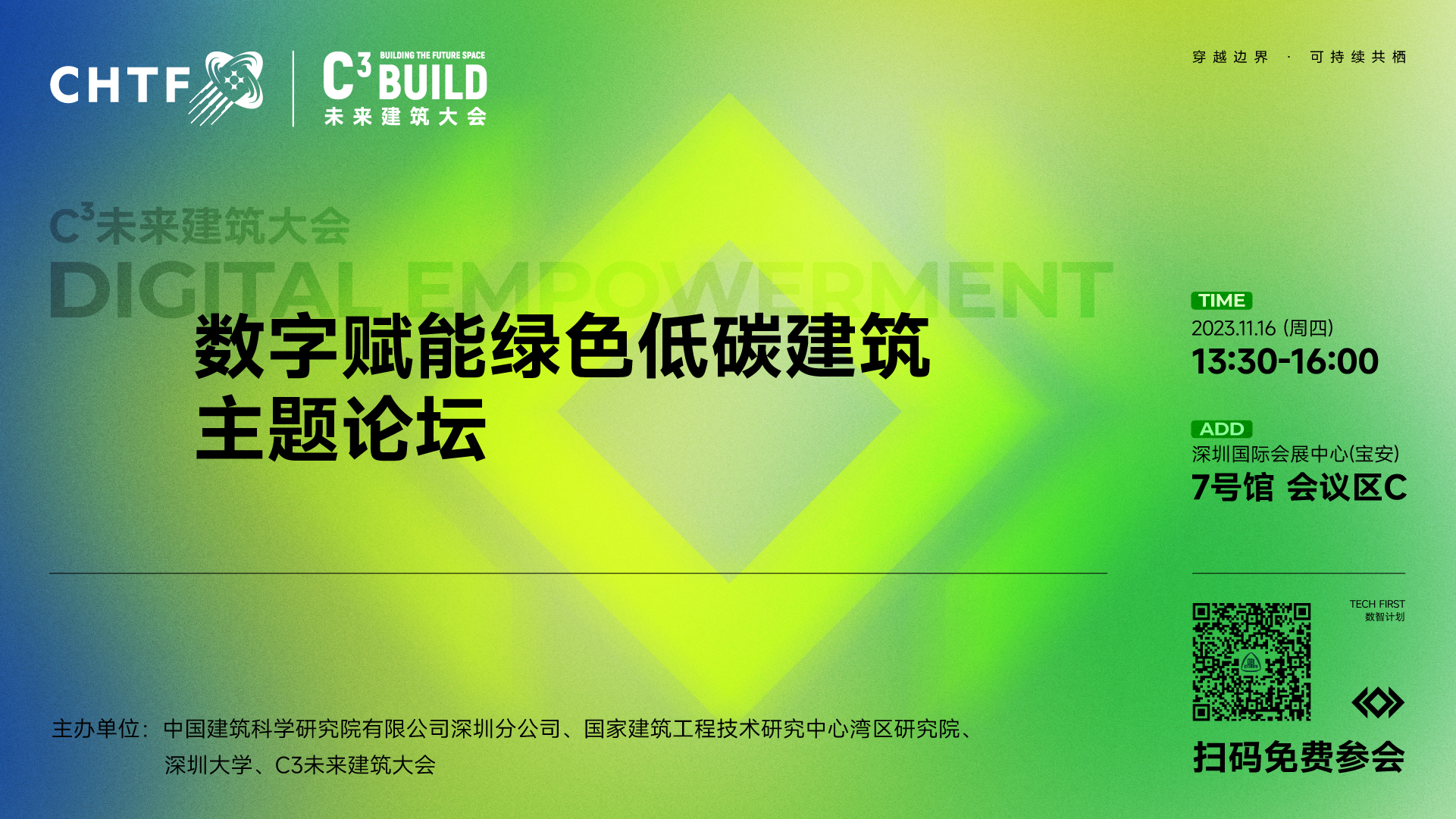 以新一代信息技術為代表的數(shù)字科技正在賦能建筑行業(yè)的創(chuàng)新發(fā)展,在實現(xiàn)碳達峰、碳中和目標的進程中,數(shù)字技術更是推進綠色低碳技術攻關,實現(xiàn)綠色建造、以人為本、智慧運維的重要手段。2023年高交會-C³未來建筑大會聯(lián)合中國建筑科學研究院有限公司深圳分公司、國家建筑工程技術研究中心灣區(qū)研究院、深圳大學,共同發(fā)起主題論壇“數(shù)字賦能綠色低碳建筑”。本次論壇將圍繞數(shù)字科技創(chuàng)新賦能城市綠色低碳發(fā)展開展研討,打造綠色創(chuàng)新平臺、匯聚綠色創(chuàng)新人才,助力國家雙碳戰(zhàn)略實施。