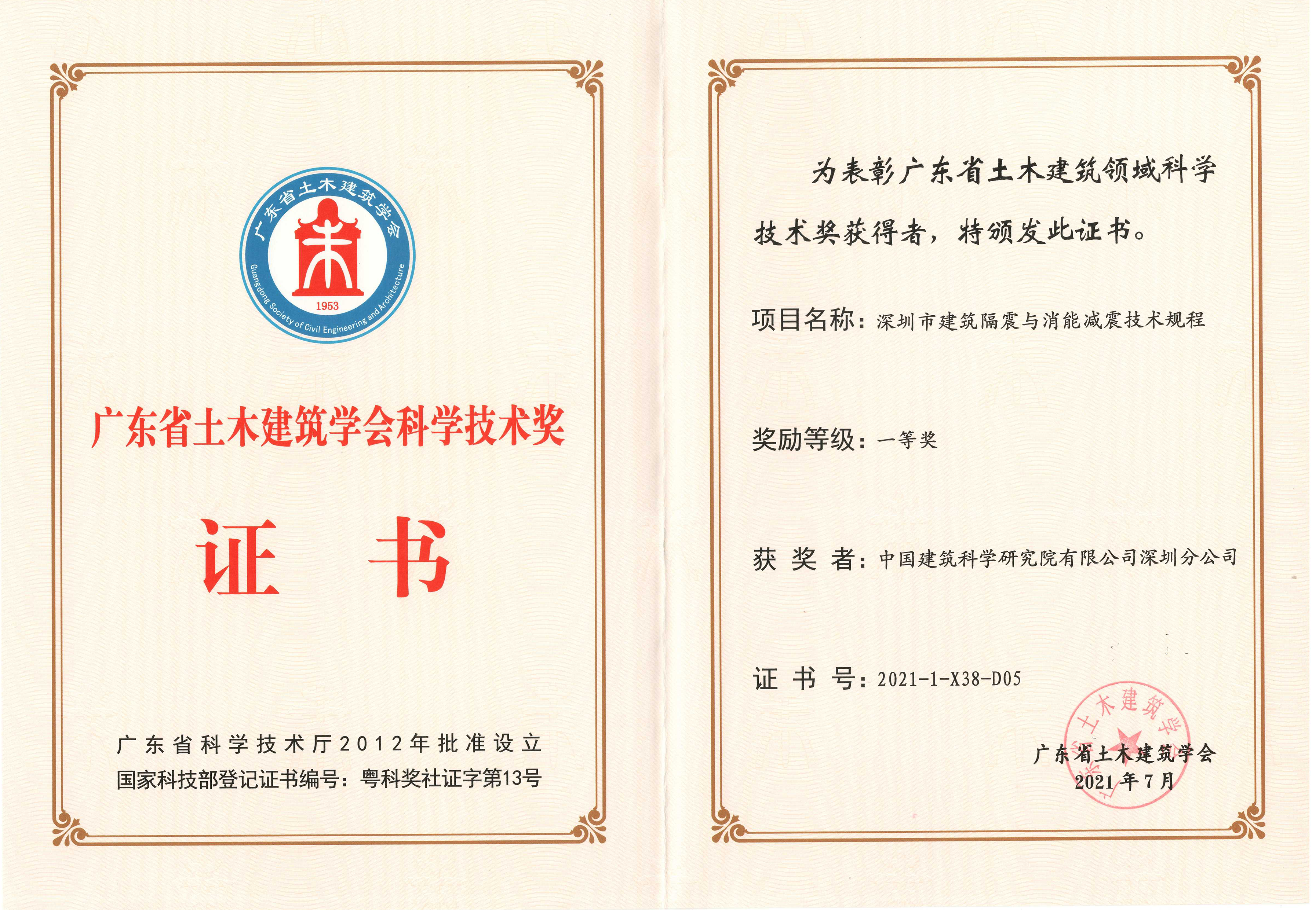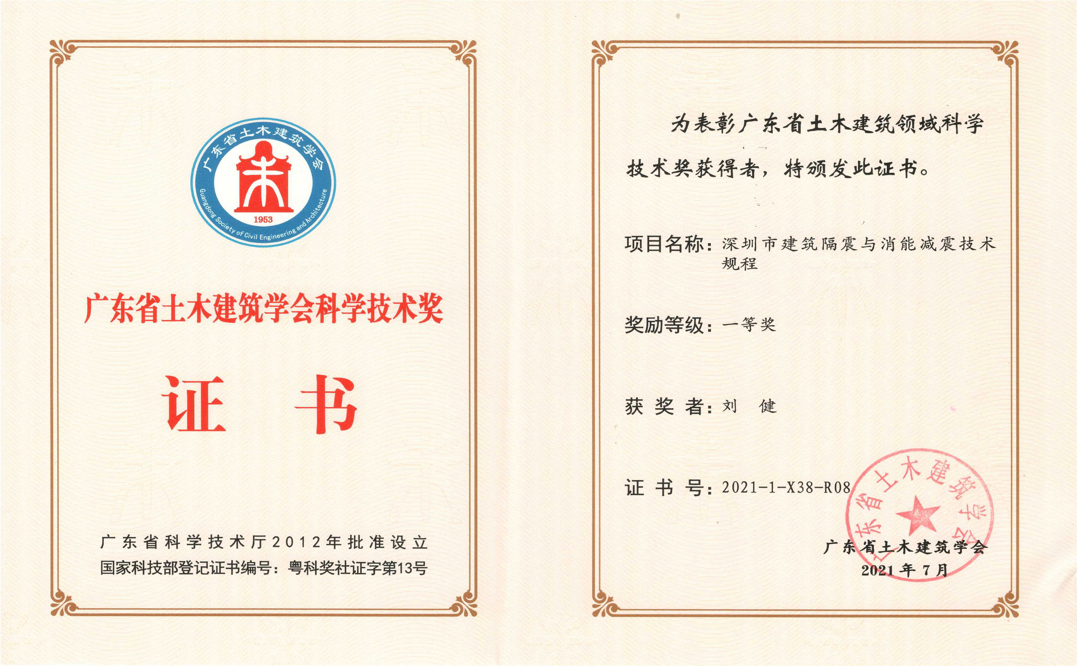 日前,廣東省土木建筑學會公布了“2021年(第九屆)廣東省土木建筑學會科學技術獎獲獎”獲獎項目名單,經(jīng)評審委員會評審及獎勵委員會審定,中國建研院深圳分公司參編的《深圳市建筑隔振與消能減震技術規(guī)程》項目榮獲廣東省土木建筑學會科學技術獎一等獎!總工程師劉健作為參編人員,全程參與了該技術規(guī)程的編制工作,對本規(guī)程的章節(jié)架構,編寫內容、技術指標的確定均有一定的貢獻。