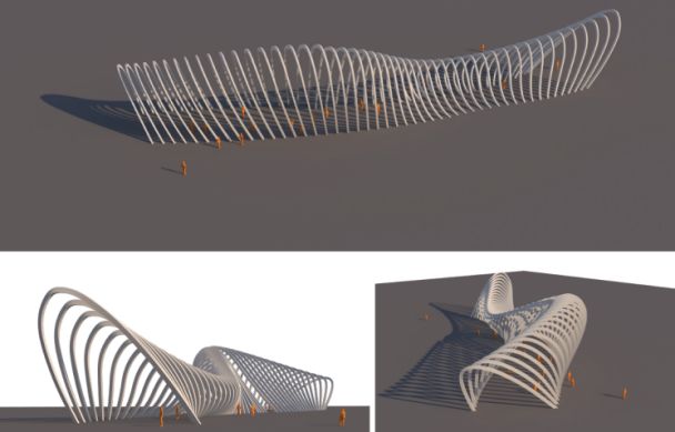 本次中標(biāo)設(shè)計范圍為公園紅線范圍內(nèi)的所有鋼結(jié)構(gòu)構(gòu)筑物(包括紅線外的延伸部分)及幕墻,涉及到鋼結(jié)構(gòu)涼亭、鋼結(jié)構(gòu)雨棚、鋼結(jié)構(gòu)連廊、海堤鋼結(jié)構(gòu)構(gòu)筑物、摩天輪廣場構(gòu)筑物、游客服務(wù)中心入口構(gòu)筑物、天幕廣場構(gòu)筑物、遮雨涼亭、景觀橋(鋼結(jié)構(gòu)部分)等鋼結(jié)構(gòu)構(gòu)筑物設(shè)計和游客服務(wù)中心(含附屬樓)的幕墻設(shè)計等18個子項設(shè)計內(nèi)容,投影面積約 2萬平方米。鋼結(jié)構(gòu)構(gòu)筑物最大跨度達(dá)40米,所有項目均為曲面異型結(jié)構(gòu),造型新穎,設(shè)計難度大,因此投標(biāo)采用了邀請投標(biāo)的形式。