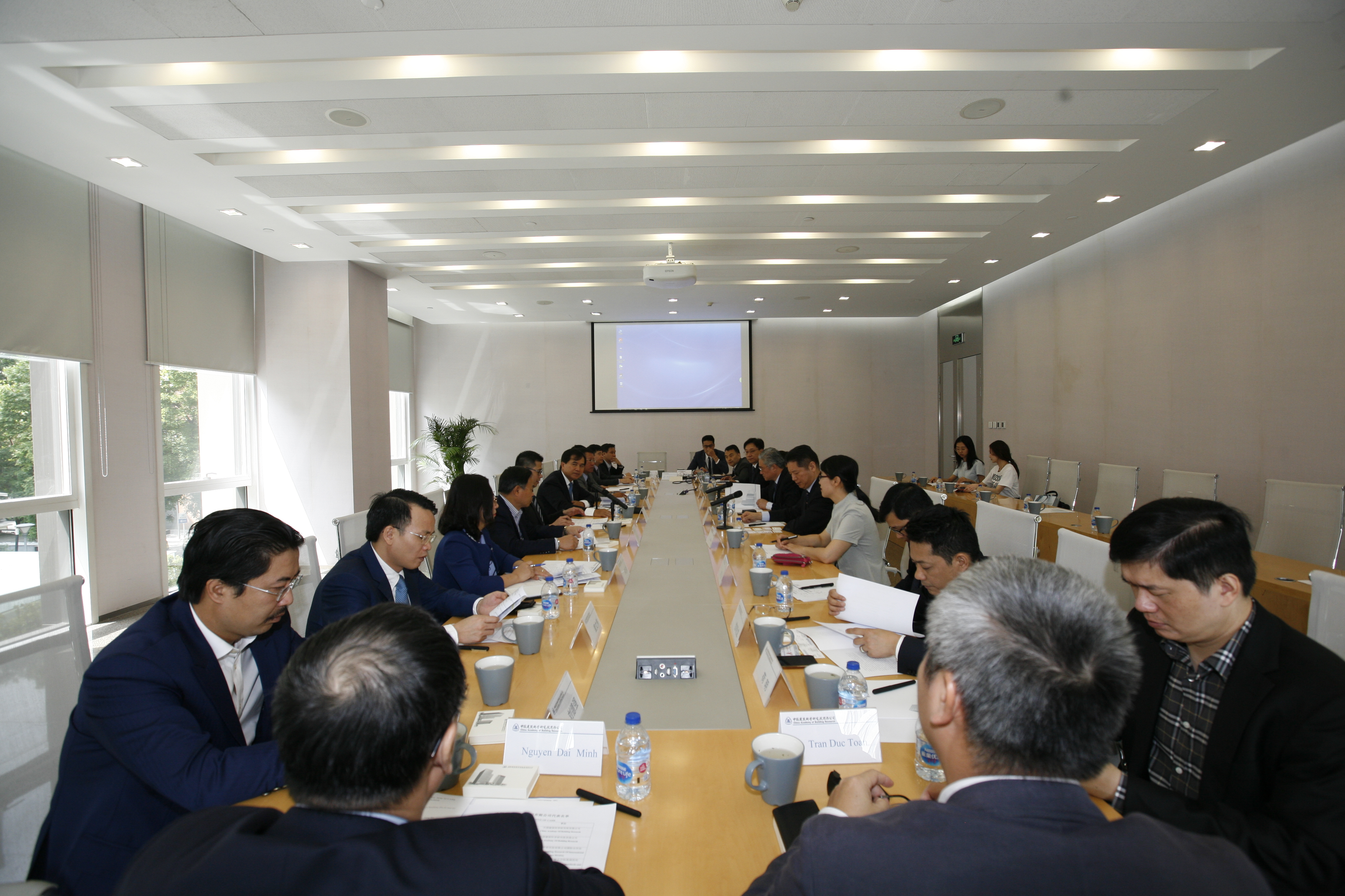 王俊代表公司對(duì)越南政府代表團(tuán)到訪(fǎng)表示了歡迎,介紹了公司總體情況、公司標(biāo)準(zhǔn)化工作情況以及公司建筑信息化領(lǐng)域的技術(shù)發(fā)展和應(yīng)用情況。越南建設(shè)部副部長(zhǎng)黎光雄表示,非常高興能來(lái)到公司交流和學(xué)習(xí),并介紹了越南工程建設(shè)標(biāo)準(zhǔn)化歷程、標(biāo)準(zhǔn)化體制、標(biāo)準(zhǔn)體系現(xiàn)狀以及標(biāo)準(zhǔn)化改革和發(fā)展情況。王清勤介紹了中國(guó)標(biāo)準(zhǔn)體系現(xiàn)狀以及未來(lái)標(biāo)準(zhǔn)化改革方向。