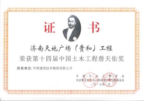 4月14日,第十四屆中國(guó)土木工程詹天佑獎(jiǎng)?lì)C獎(jiǎng)大會(huì)在北京舉行。中技集團(tuán)建筑設(shè)計(jì)院設(shè)計(jì)三所設(shè)計(jì)的濟(jì)南天地廣場(chǎng)(貴和)項(xiàng)目榮獲“第十四屆中國(guó)土木工程詹天佑獎(jiǎng)”。