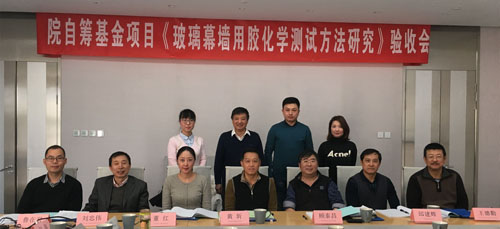 2017年1月9日,由我院檢測中心承擔(dān)的院自籌應(yīng)用研究課題“玻璃幕墻用膠化學(xué)測試方法研究”在北京順利通過驗收。本次驗收委員會由中國建筑標(biāo)準(zhǔn)設(shè)計研究院顧泰昌教授級高工、中國建筑金屬結(jié)構(gòu)協(xié)會黃圻高工、中國建筑裝飾協(xié)會邱建輝高工、中國建筑金屬結(jié)構(gòu)協(xié)會鋁門窗幕墻委員會董紅高工、北京德宏幕墻工程技術(shù)科研中心王德勤教授級高工、北京中新方建筑科技研究中心劉忠偉教授級高工、山東大學(xué)魯在君教授組成,由顧泰昌擔(dān)任主任委員,黃圻和邱建輝擔(dān)任副主任委員。院科技處程巖副研究員、院檢測中心張仁瑜副主任、課題驗收專家及課題組成員等共14人參加了會議。